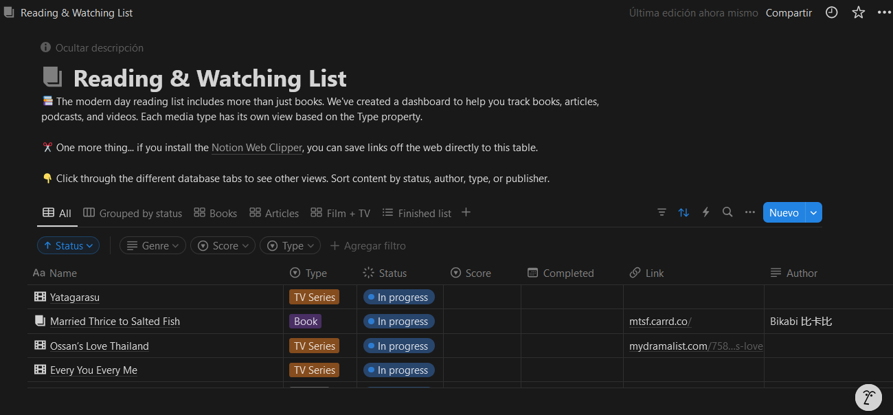 I used to love spreadsheets but at some point the OCD was so bad that instead of useful tools, they became something that tortured me if I didn't keep track of every single aspect of my life in them, so I stopped using them. And after that I have learned to accept that the world didn't end because of it. But my memory is shit and sometimes I want to remember when I watched or read something, so I'm trying this. Let's see if all the therapy has worked and I can use these tools without losing control again (fingers crossed :P).